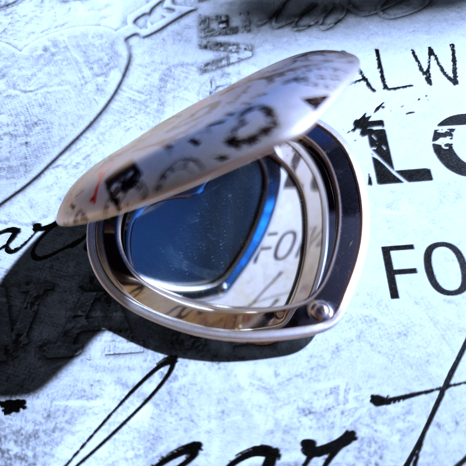 Kompakter Taschenspiegel mit Herz- und Paris-Design; praktisches, stilvolles Accessoire für unterwegs.